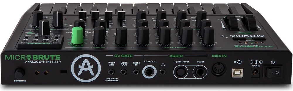 - USB In/Out: Kaksisuuntainen MIDI; käytä MicroBrutea master-koskettimistona tai automatisoi kaikki parametrit DAWista