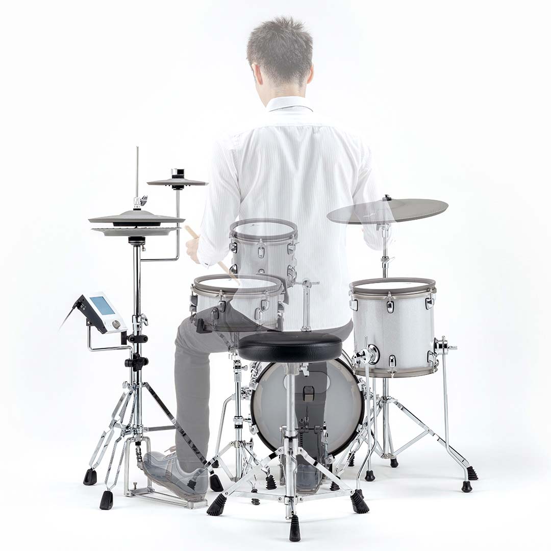 - Pehmeät, aidon tuntuiset silikonipäällysteiset symbaalit: 8″ kaksialueinen splash/crash sammutustoiminnolla, 12″ kaksialueinen liikkuva hi-hat, 16″ kolmialueinen ride sammutustoiminnolla Musacorner