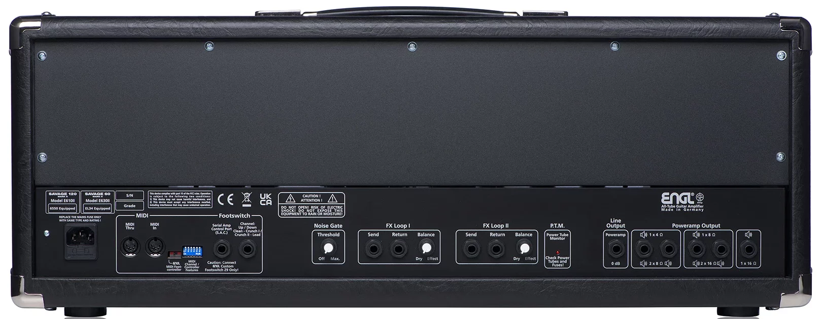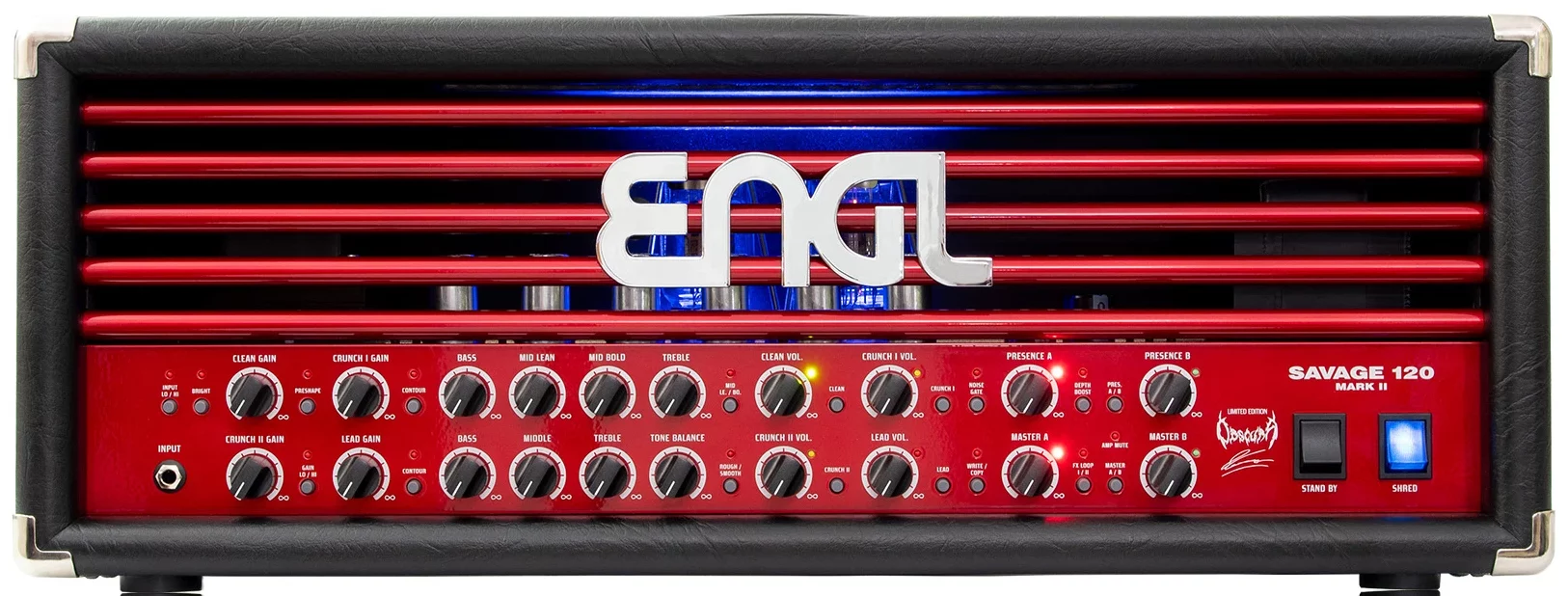 Tämän rajoitetun erän vahvistimen tekee ainutlaatuiseksi sen lähes loputon monipuolisuus: se tuottaa lämpimiä ja selkeitä puhtaita sävyjä, massiivisia ja tiukkoja crunch- ja rytmisoundeja sekä täyteläisiä ja dynaamisia high gain -soolosoundeja. Kiertuetestattu rakenne suojaa ja kantaa sisällään kuusi Engl ECC83 / 12AX7 -putkea etuasteessa ja kaksi Engl KT88 -putkea pääteasteessa, tarjoten täydellisen soundin missä päin maailmaa tahansa.
