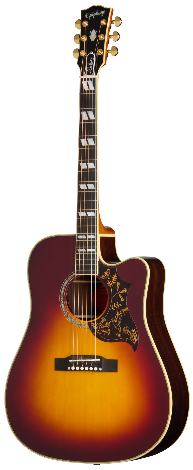 Ikoninen Hummingbird™ on liittynyt Epiphone Inspired by Gibson Custom -mallistoon uutena Deluxe Cutaway -versiona. Tämä kaunis akustinen kitara on suunniteltu ja viimeistelty Epiphonen ja Gibson Customin akustisten kitaroiden tiimin yhteistyönä Bozemanissa, Montanassa. Musacorner