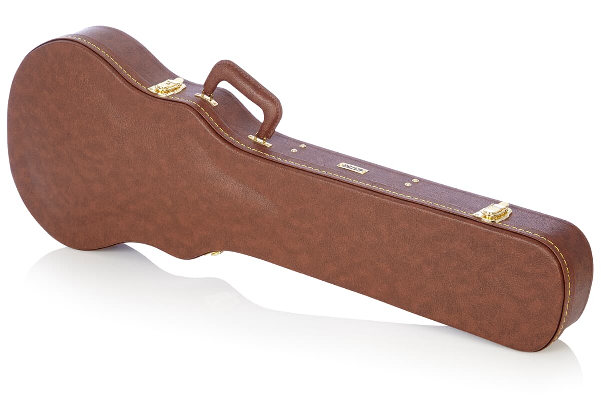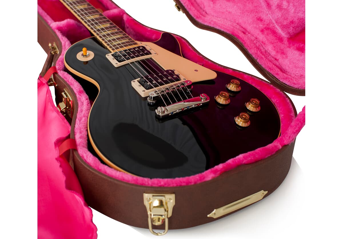 Laadukas vanerikotelo Les Paul -tyylisille kitaroille. Väri: ruskea/pinkki