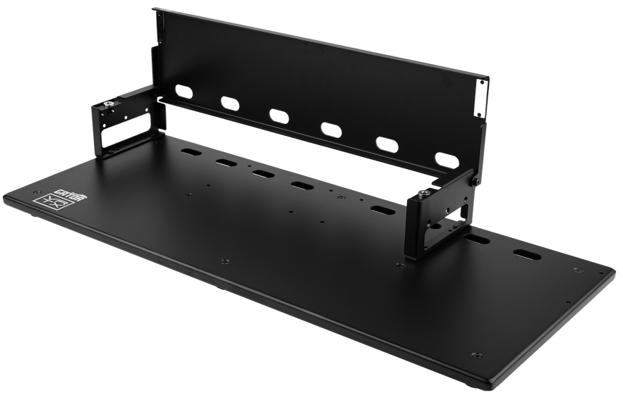 - OPTIMOITU RAKENNE: kestävä, teksturoimaton jauhemaalaus varmistaa tarrakiinnikkeiden pitävän otteen tarkan asettelun jälkeen. Suuret aukot alustassa helpottavat kaapelointia, ja magneeteilla varustettu kääntyvä toisen tason alusta lisää pedaalitilaa, sekä tarjoaa helposti saavutettavat sijoituspaikat vaihdettaville moduuleille.