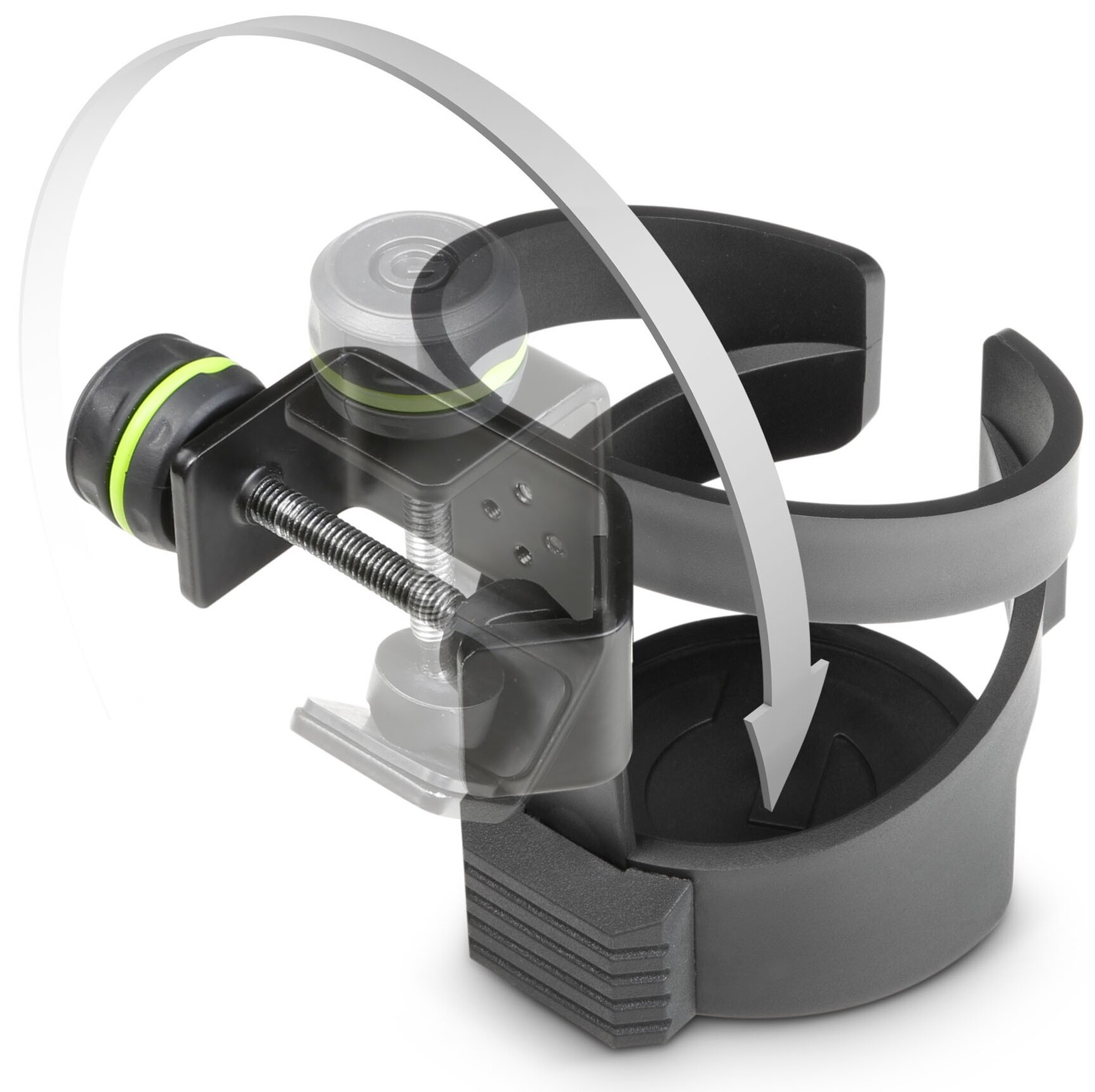 Juomateline mikrofoni-, kaiutin- tai nuottitelineen varteen (max. 35mm putkeen), johon mahtuu halkaisijaltaan max. 70mm astia. Voidaan asentaa myös pöydän/tason reunaan.