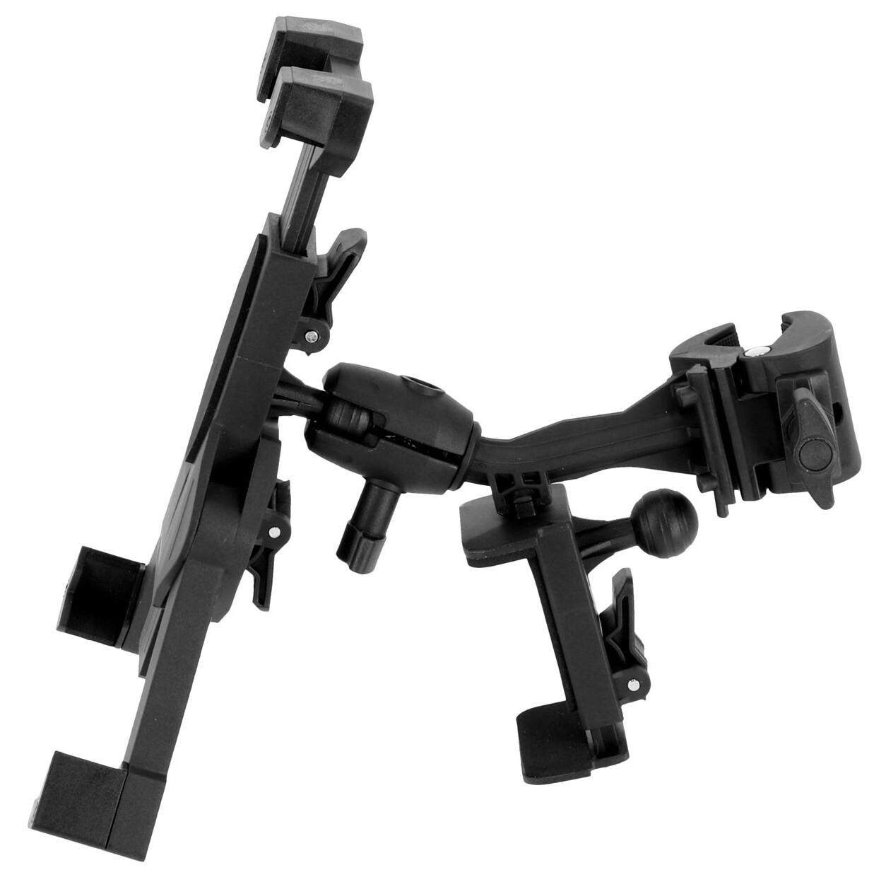 - Lisävarusteet: telineessä on mukana adapteri kulmikkaille putkille ja monitoimipidike, johon voi kiinnittää esimerkiksi virtapankin tai älypuhelimen joko tabletin taakse tai paikalle