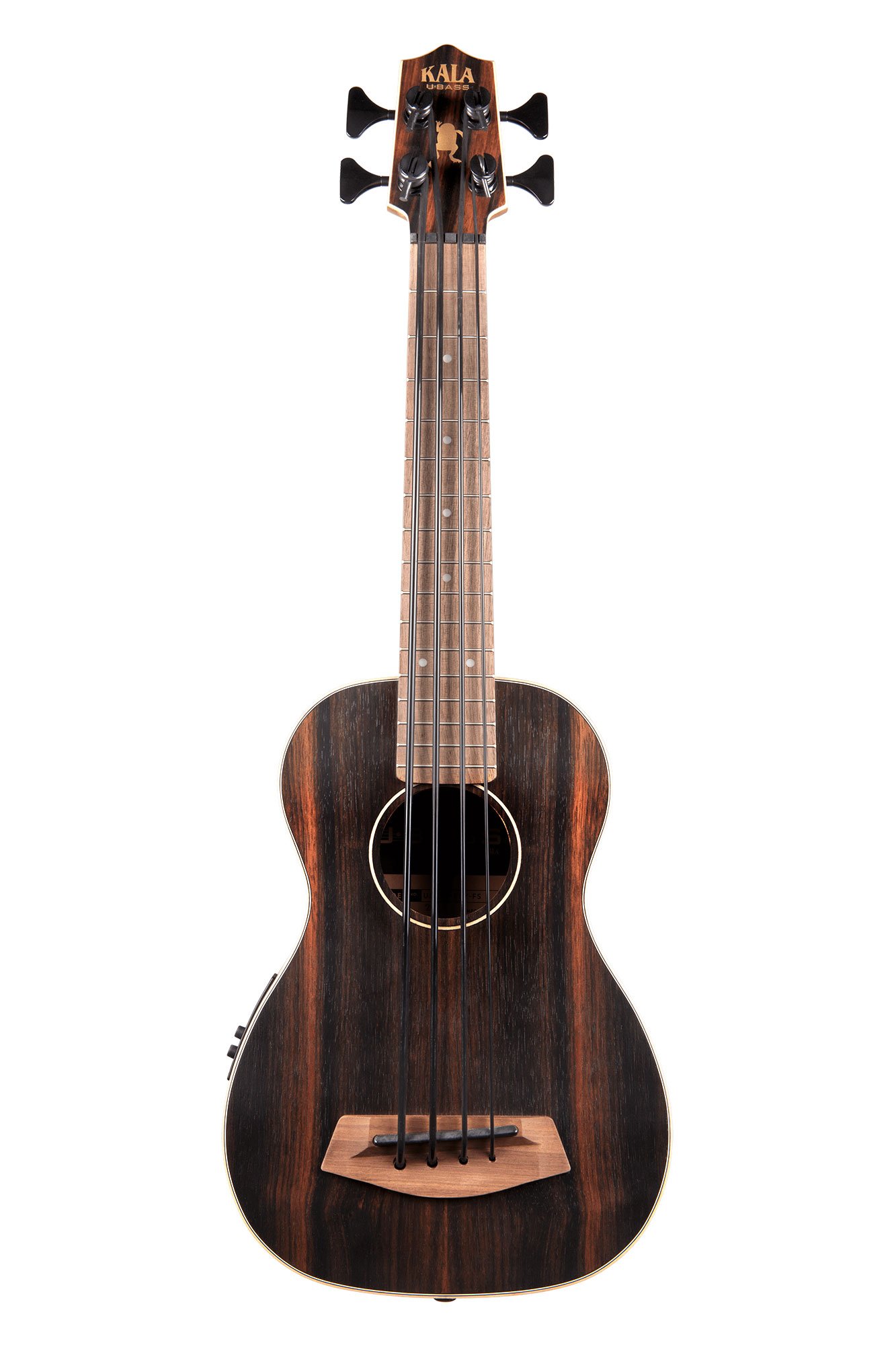 Kala:n elektroakustinen bassoukulele kokopuisella raidallisella eebenpuukannella, -sivuilla ja -pohjalla, sekä mahonkikaulalla ja Laurel-otelaudalla. Shadow® U•BASS® NFX -mikrofonijärjestelmä. Custom Hipshot Ultralite™ -virittimet. GraphTech TUSQ® -satula. Satiiniviimeistely, Natural. ”Road Toad Pahoehoe” -kielet. Mukana Deluxe Padded Bag.