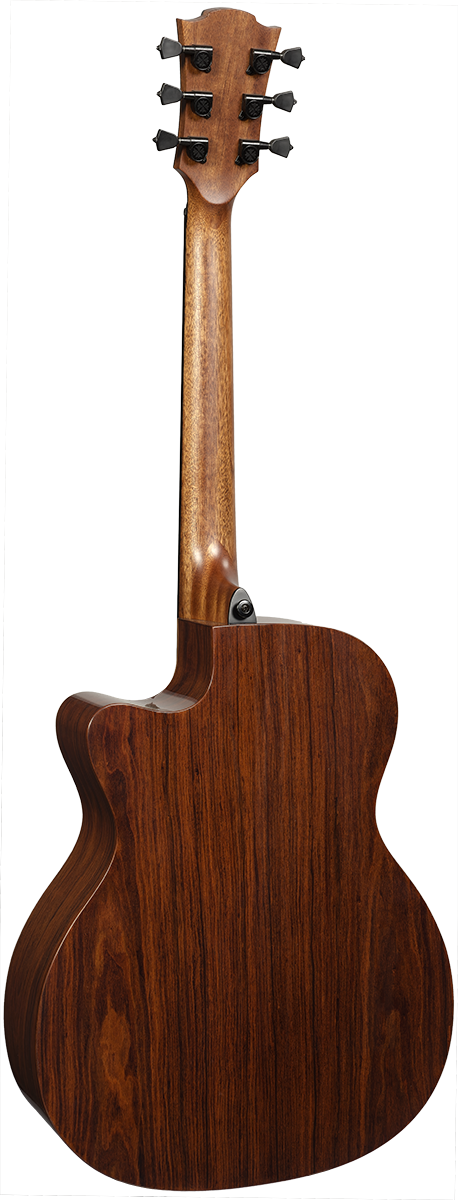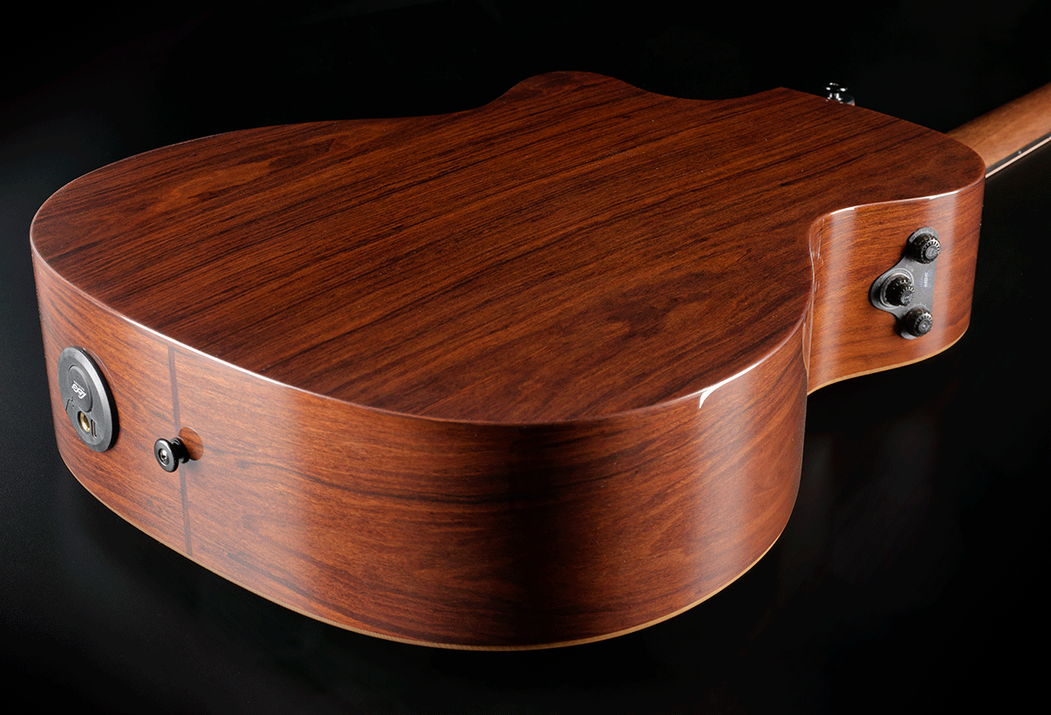 Lâg TBW2ACE on valmistettu huolellisesti, jotta sen äänenlaatu miellyttää niin aloittelevia, kuin kokeneitakin soittajia. Kannen materiaali on kokopuista punaseetriä, jonka kiiltävä viimeistely tuo esiin sen visuaalisen kauneuden. Pohja ja sivut on tehty Santos-ruusupuusta, myös kiiltäväksi viimeisteltynä, mikä luo elegantin ja kestävän kokonaisuuden. Talla ja otelauta ovat mustaa BrankoWood-puuta, joka korostaa kitaran visuaalista viehätystä. Kaula on valmistettu Khaya-mahongista ja se tarjoaa miellyttävän soitettavuuden. Kaulan satiiniviimeistely ja kaksisuuntainen säädettävä kaularauta lisäävät käyttömukavuutta ja muokattavuutta. Mustasta BrankoWoodista valmistettu lapamalli kruunaa kokonaisuuden ja kuvastaa Lâg-kitaroiden perintöä ja innovatiivisuutta. Musacorner