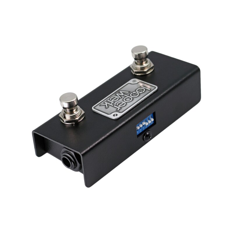 Aux-Tap Double. Kaksinappinen momentary-jalkakytkin, jonka toiminnallisuus on määritettävissä.