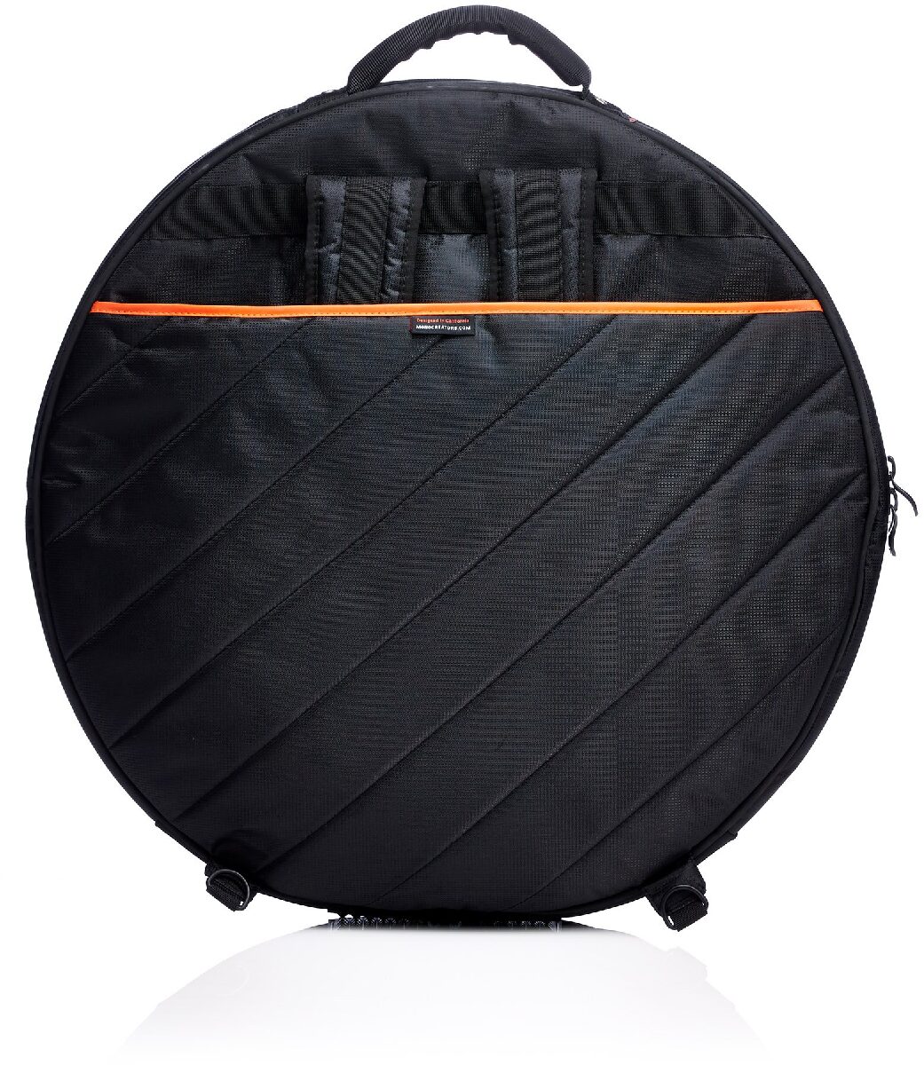 Mono M80 Cymbal Case on esimerkki siitä miten symbaalipussi pitäisi rakentaa. Kahvat on kiinnitetty teräsniitein ja kantaminen onnistuu myös selässä paksujen olkahihnojen avulla. Olkahihnat menevät myös näppärästi piiloon pussin takakannen sisään jos niitä ei tarvita. Pussin 22″ pääosaston lisäksi kannessa on kaksi pienempää lokeroa pienemmille symbaaleille. Päälokero on jaettu, jotta symbaalien viimeistely ei mene pilalle niiden hangatessa toisiaan vasten. Pussin sisällä on myös oma klipsi rumpuavaimelle ja erillinen tasku virvelitelineen lukolle. Pussin rakenne on vettä hylkivä ja se suojaa rumpua tehokkaasti myös satunnaisilta iskuilta ja pudotuksilta. Rumpupussien yleiset heikot kohdat – kahvat ja vetoketjut ovat viimeistä huutoa ja kestävät taatusti käyttöä vuodesta toiseen. Pudotuksiakaan ei tarvitse pelätä entiseen tapaan sillä laukun sisällä on Vertigo-pusseista tuttu The Boot-paneeli, joka vaimentaa iskuja erittäin tehokkaasti. Symbaalisi ovat siis suojassa vaikka pudottaisit pullollaan peltejä olevan kassin maahan.