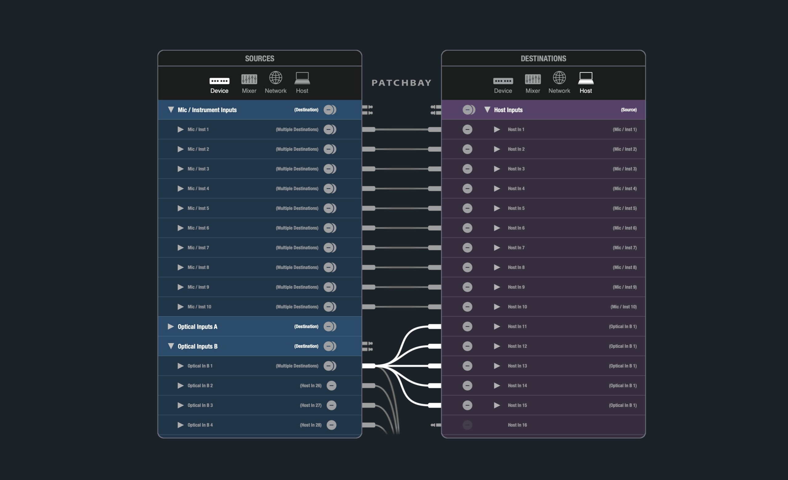 Thunderbolt™ 4/USB4 audio interface DSP:llä, miksaustoiminnoilla, efekteillä ja verkkoliitännöillä