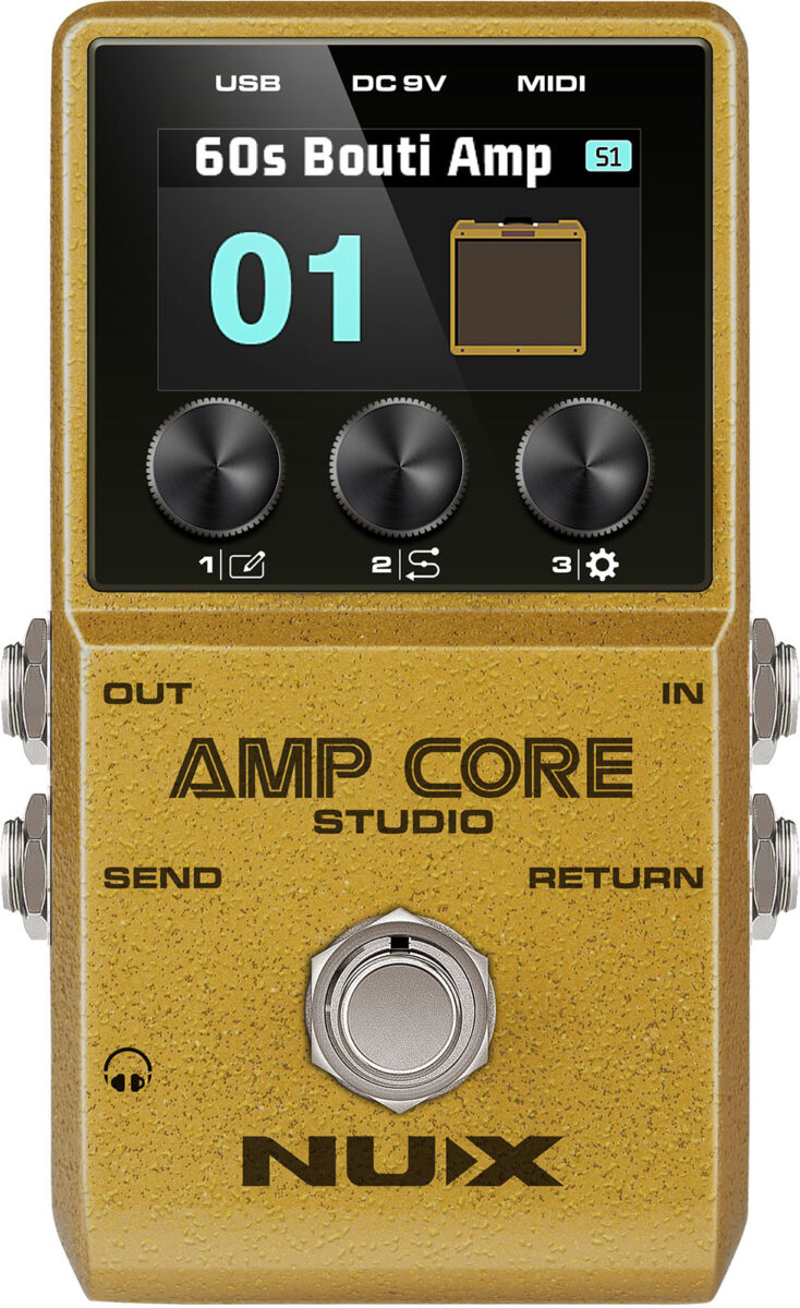 NUX Amp Core Studio on monipuolinen ja kompaktin kokoinen pedaali, joka tarjoaa kattavan valikoiman vahvistin- ja kaappisimulaatioita, sekä impulssivasteiden (IR) latausmahdollisuuden. Se on suunniteltu kitaristeille ja basisteille, jotka haluavat monipuolistaa soundiaan ilman fyysisten vahvistimien ja kaappien tarvetta.
