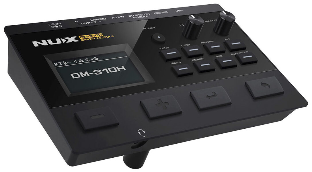Jos olet vasta rumpalinurasi alussa, saattaa olla hankala päättää mistä aloittaa harjoitteleminen – NUX DM-310H on varustettu monipuolisilla ohjaustoiminnoilla, joiden avulla pääset suoraan rumpalin perustaitojen syrjään kiinni ja voit aloittaa paradiddlen harjoittelun. Mikäli pelkkä harjoitteiden toistaminen alkaa kyllästyttää, kytke vain Song-moodi päälle ja pääset soittamaan suoraan NUX:in valmistelemien kappaleiden päälle. Voit myös käyttää Aux-sisääntuloa ja Bluetooth-liitäntää omien kappaleittesi toistamiseen ja niiden mukana soittamiseen. USB audio interfacen avulla myös soiton äänittäminen tietokoneelle onnistuu ja DM-310H viekin tietokoneelle 8 raitaa ääntä kerralla, eli käytännössä liki jokaisen pädin erikseen.