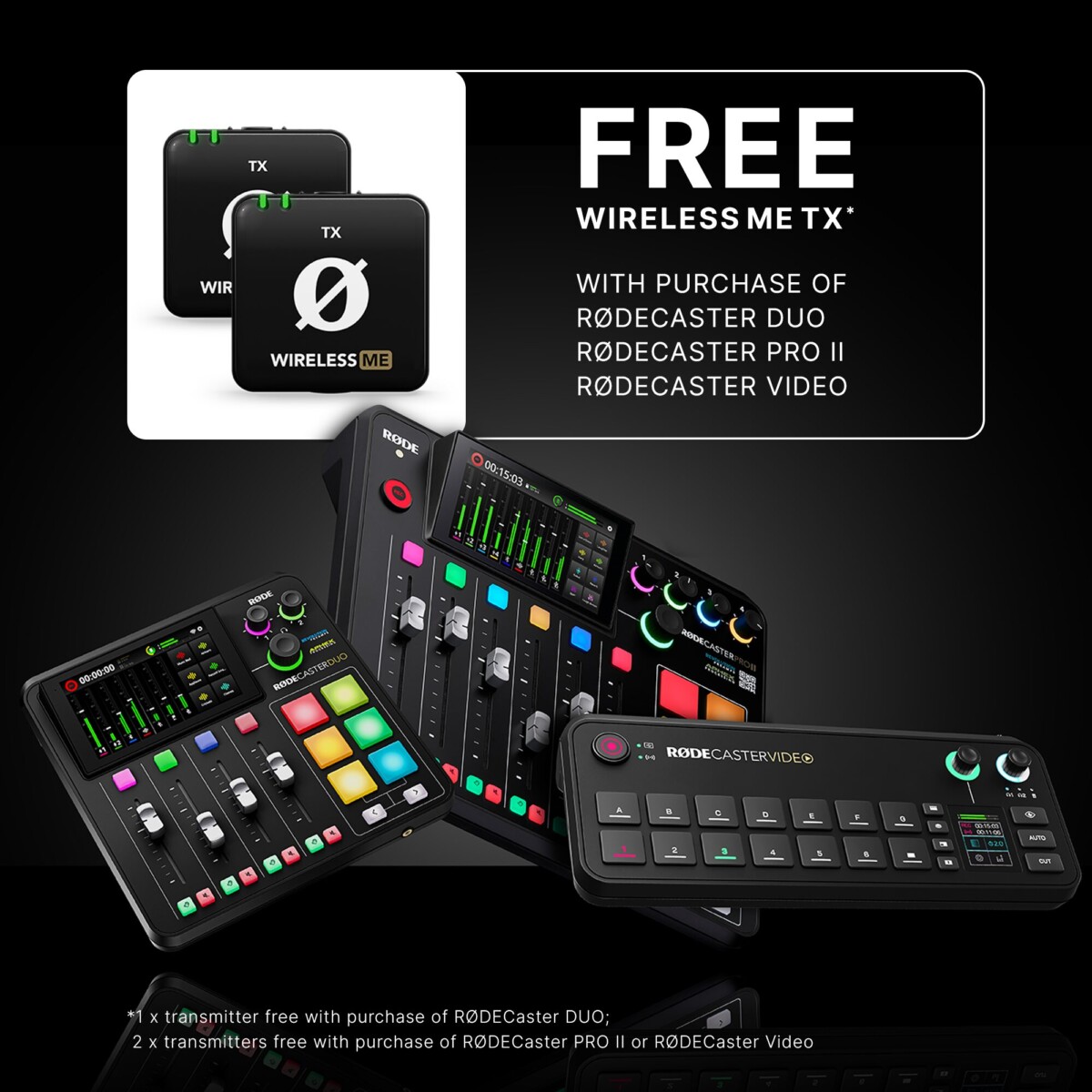 **Lisää tietoa päivityksestä: https://rode.com/en/about/news-info/rodecaster-pro-ii-and-duo-can-now-connect-rode-wireless-mics-via-usb