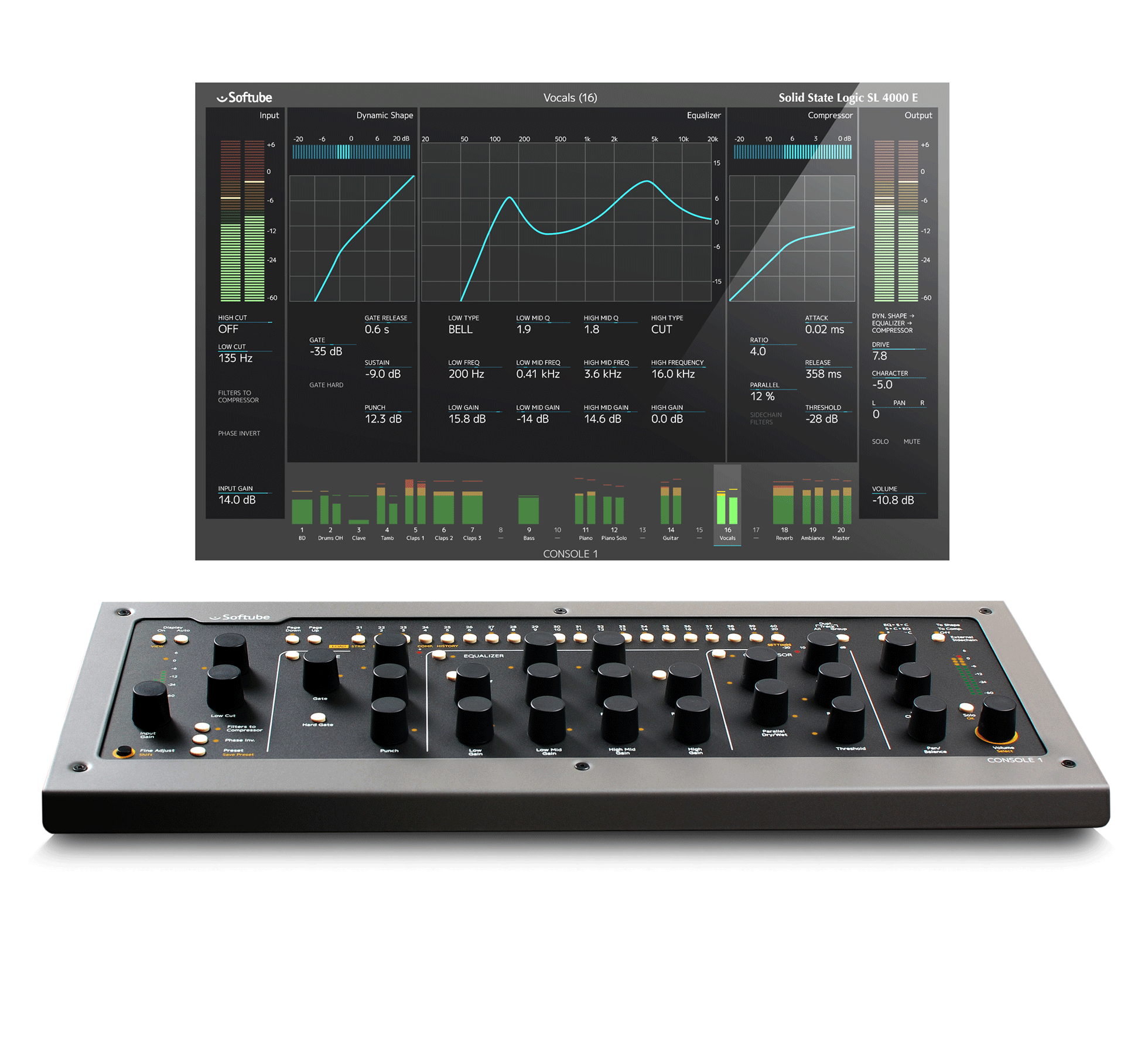 Helli raitojasi legendaarisen Solid State Logic SL 4000 E -mikserin soundilla – onhan kyseessä se kenties kaikkien aikojen käytetyin mikserimalli musiikin äänittämisen historiassa. Softuben emulaatio kehitettiin läheisessäyhteistyössä SSL:n kanssa ja se toimitetaan Console 1 -ohjaimen mukana.