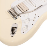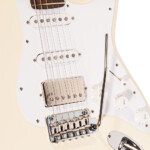 Mallin runko on laadukasta leppää ja kaula on vaahteraa satiiniviimeistelyllä. Rungossa on perinteiset kavennukset soittomukavuuden parantamiseksi. 22 nauhaa ovat Dunlopin 6105 medium jumbo -mallia, joten soittotuntuma on mukavan helppo. Tässä mallissa on ajaton, kiiltolakattu Vintage White -viimeistely valkoisella plektrasuojalla ja nikkelinvärisillä metalliosilla.