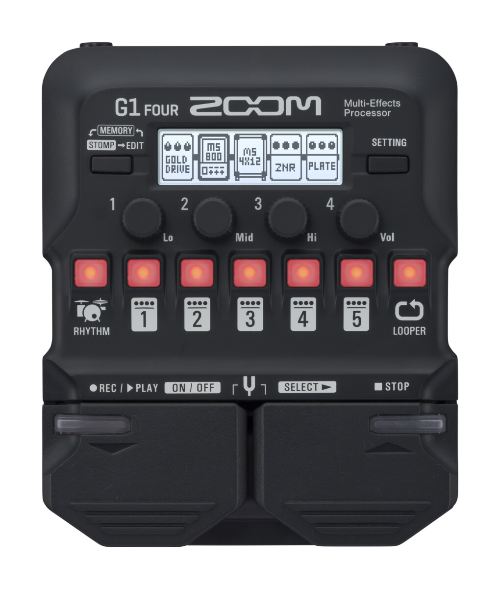 Zoom G1 FOUR sisältää yli 60 efektiä, niin tavallisia kuin hieman erikoisempiakin, esimerkiksi rengasmodulaattori, pitch-shift, viive ja mallinnettu sitar-soundi. Tarjolla on myös 13 klassista kaikille tuttua vahvistinta ja kaappia taiten mallinnettuna. Loopperiosio osaa tallentaa jopa 30 sekuntia soittoa, ja toimii niin erinomaisena treenikumppanina kuin livesoitossa monikerroksisten sovitusten luomiseen.